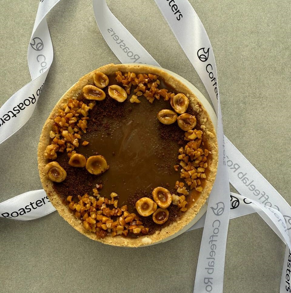 пісочна основа, крем-чіз, карамель з білим шоколадом, прикрашаємо горіхами та шоколадною крихтою
